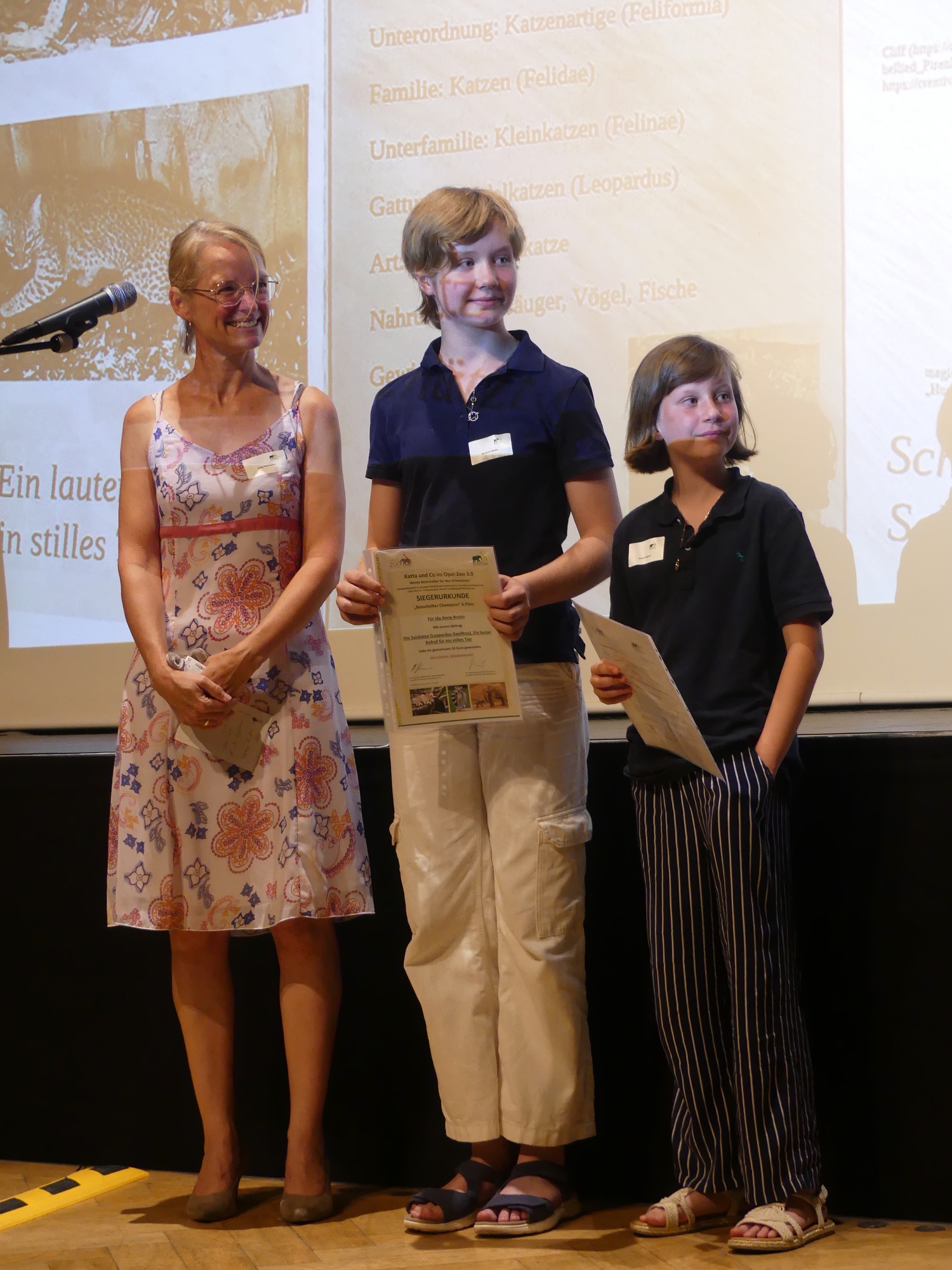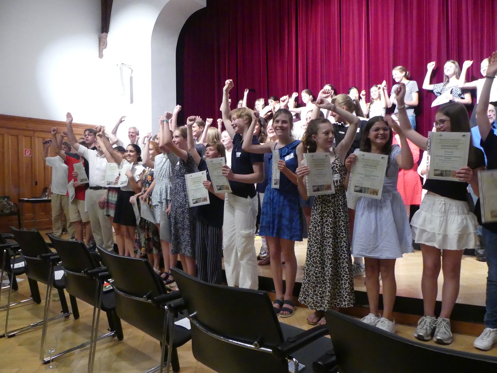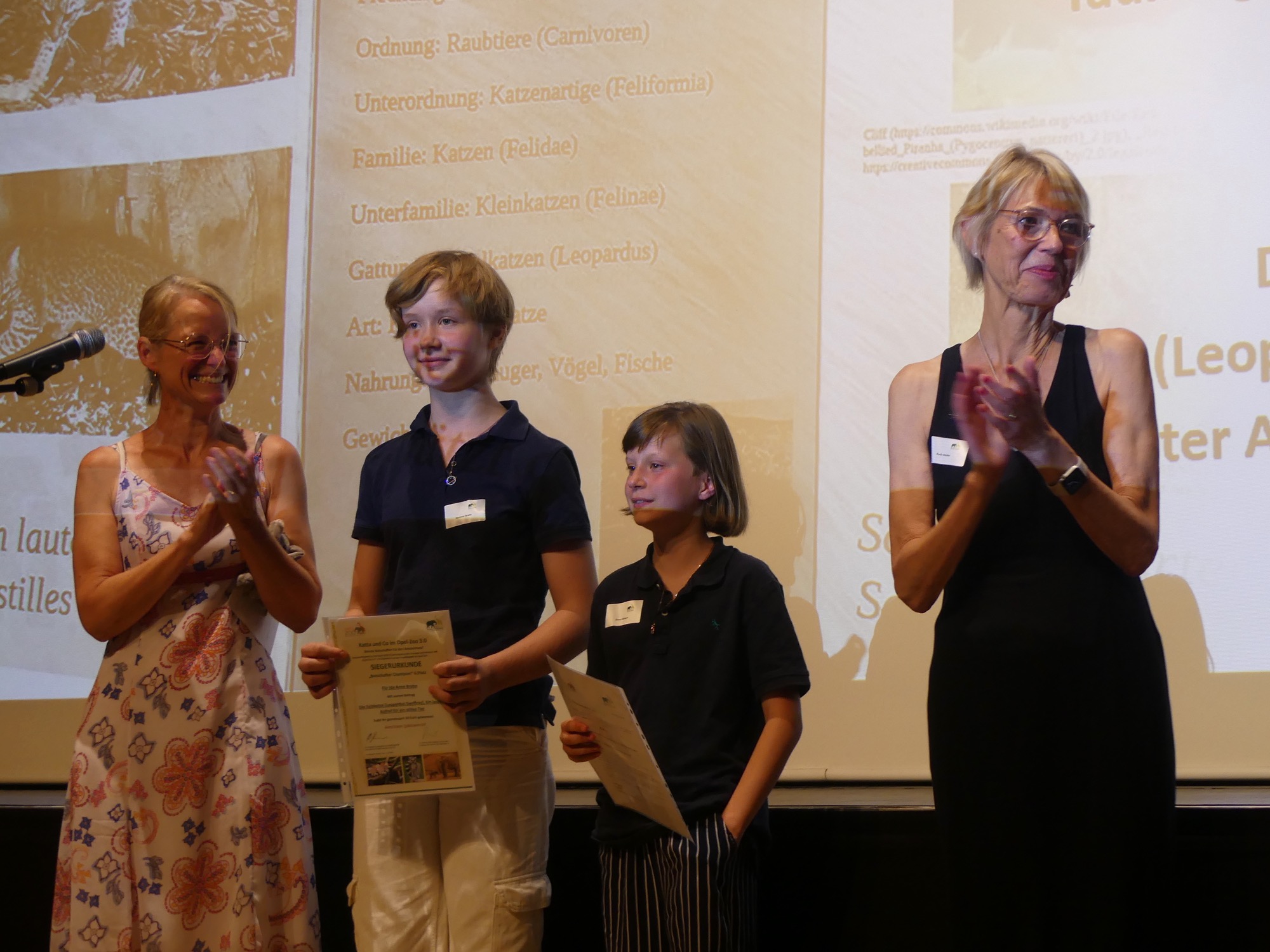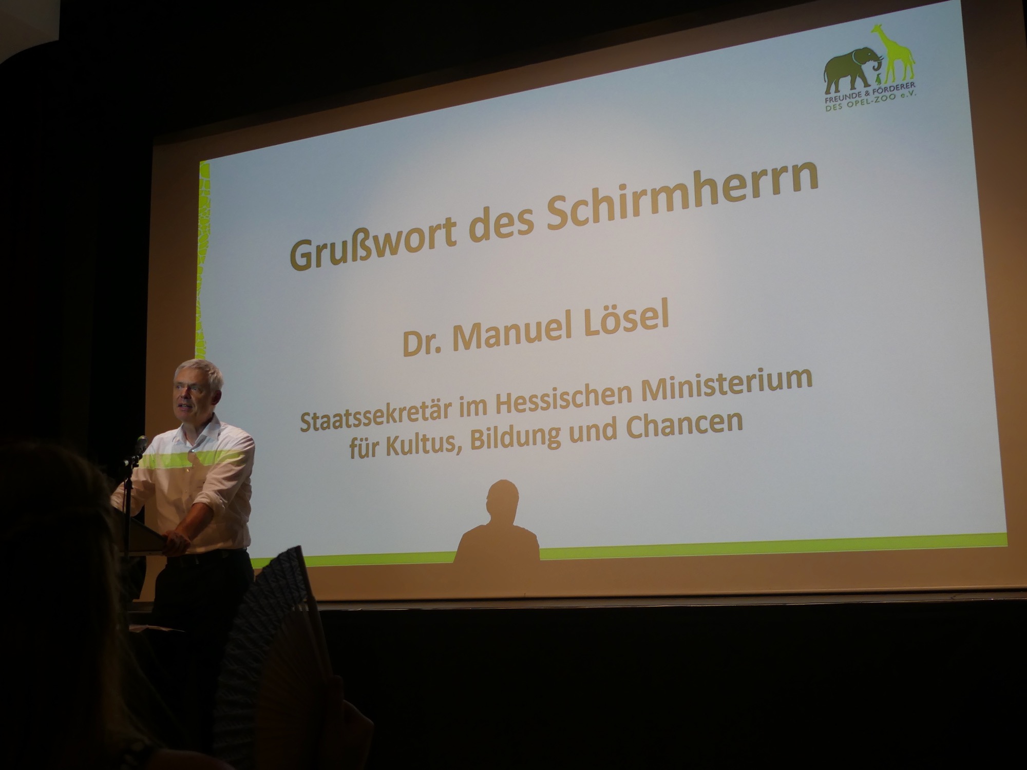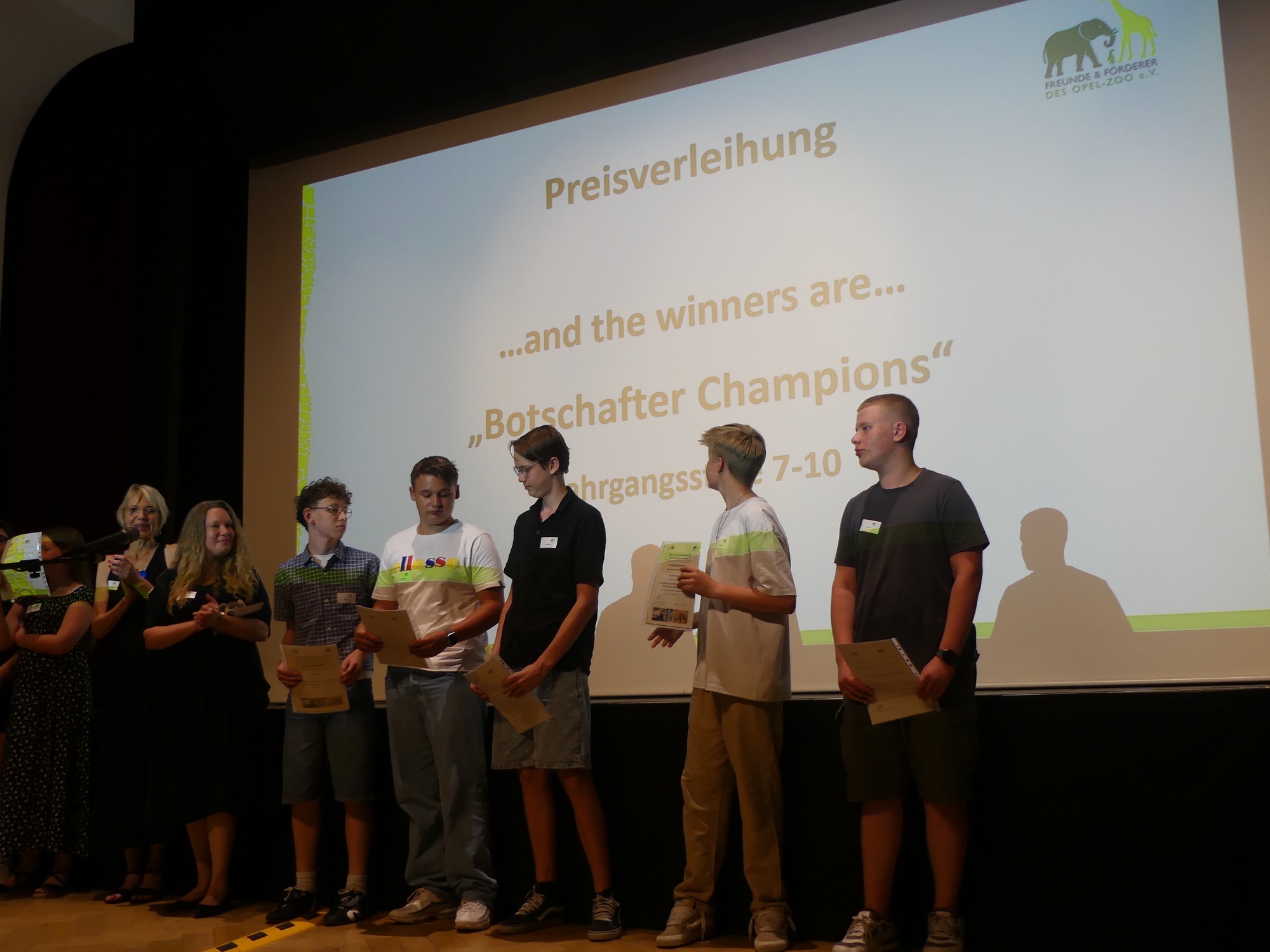 Der Abend wurde von einem abwechslungsreichen Programm gerahmt und von Stephan Hübner, Redakteur für Bildung und Wissenschaft beim Hessischen Rundfunk, kenntnisreich und humorvoll moderiert. Mehrere musikalische Beiträge steuerte der Chor unter Leitung von Frau Büttner bei, begleitet von Herrn Leichtfuß am Piano. Anschließend zollten einige hochkarätige Redner den Teilnehmenden ihren Respekt. Besonders bewegend waren die Worte von Staatssekretär Dr. Manuel Lösel vom Hessischen Ministerium für Kultus, Bildung und Chancen, der als Schirmherr des Wettbewerbs die Siegerurkunden überreichte: „Heute werden nicht nur Preise verliehen, denn wir feiern, was wirklich zählt: den Einsatz für unsere Erde, ihre Tiere und unsere Zukunft. Die prämierten Schülerinnen und Schüler haben verstanden: Lernen endet nicht an der Schultür – genau das macht außerschulische Lernorte wie den Opel-Zoo so wertvoll.“