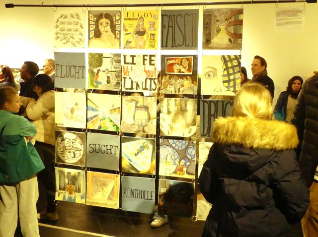 Am 20. Februar fand die diesjährige Vernissage zur Ausstellung von Kunst aus Schulen des Hochtaunuskreise in der Galerie Atlantis in Bad Homburg statt, in deren Verlauf die gelungensten der eingereichten Werke von einer in der Sache bewanderten Jury mit Preisen ausgezeichnet wird. In diesem Jahr haben sich neben dem TGK, das durch den Leistungskurs der Q1 unter Leitung von Frau Schendzielorz vertreten und mit dem großformatigen Werk „Brave enough“ in den Wettbewerb gegangen war, acht weitere Schulen des Hochtaunuskreises mit zum Teil mehreren Beiträgen beteiligt. Die Vernissage war noch besser besucht als in den letzten Jahren und die ausgestellten Schülerwerke wurden intensiv begutachtet und besprochen. Mit Spannung wurde dann die Preisverleihung verfolgt. Die Jury hatte sich in diesem Jahr entschieden, drei zweite und drei erste Plätze zu vergeben. Nachdem alle Preisträger bekanntgegeben worden waren und nur noch der letzte Preisträger offen war, war die Spannung für unsere SchülerInnen kaum noch zu ertragen. Unter Würdigung der gelungenen Gegenüberstellung der beiden Seiten - der heilen Welt, fast schon kitschig, übertrieben schön im goldenen Licht auf der einen Seite und den kritisch zu betrachtenden Zusammenhängen, aufgegriffen in den künstlerischen Positionen auf der anderen Seite, hier verbunden mit der Aufforderung, die Handys bereit zu halten, um QR-Codes für Musik zu scannen und zu den individuellen Statements der einzelnen Gemälden dieser zweiten Seite die diese pointierende Musik zu hören, wurden sie für ihre Arbeit vom Landrat des Hochtaunuskreises mit dem mit einem Geldpreis versehenen ersten Preis ausgezeichnet.