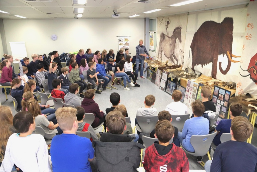 „Am 16.5.2019 hatten wir, die Klassen 6a und 6e, einen Steinzeittag. Herr Dr. Rittweger kam an diesem Tag zu uns, um uns alle ein wenig über die Altsteinzeit zu informieren.