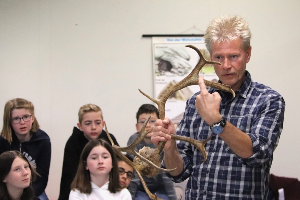 Die Kinder durften einen Schultag lang selbst erfahren, wie sich das Leben in der Altsteinzeit angefühlt haben mag. Frau Pfeifer koordinierte das Ereignis; zudem waren als Lehrkräfte Frau Heyne, Frau Nowka und Herr Brinkmann dabei. Durch den Tag führte Dr. Holger Rittweger, der sein Mobiles Landschaftsmuseum (MoLaMu) schon zum vierten Mal am Taunusgymnasium aufgebaut hatte und die Kinder immer wieder durch sein Fachwissen und seine mitreißende Art zu begeistern verstand. Zudem regte er die Schülerinnen und Schüler zum Nachdenken an und setzte überzeugende Impulse zum schonenden Umgang mit den Ressourcen unseres Planeten.