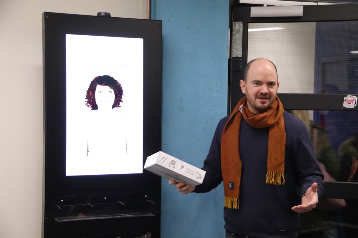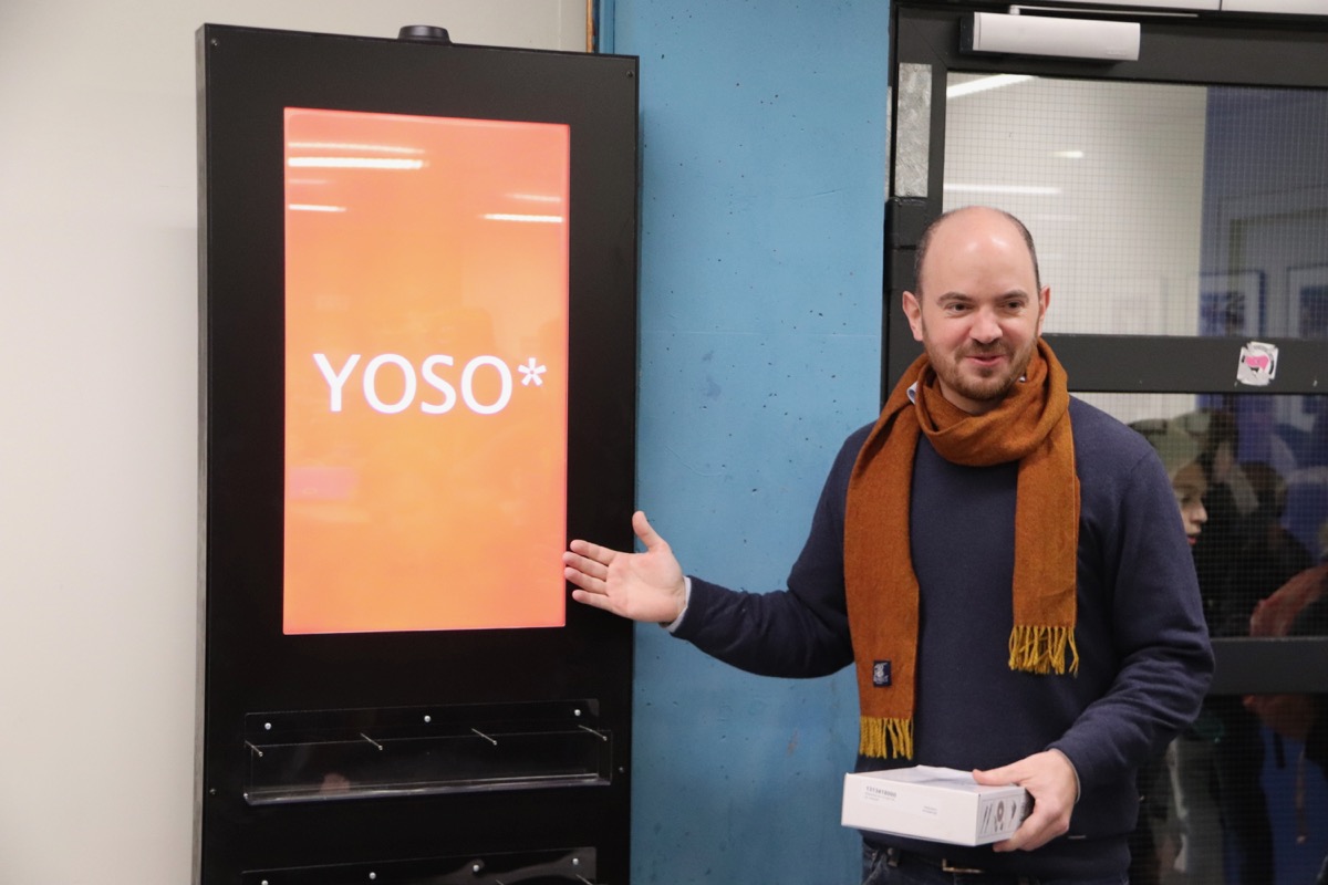 Sie ist 2 Meter hoch, 70 Zentimeter breit und mit ihrem großformatigen Display ein echter Hingucker: die Digitale Zukunftssäule für die Duale Berufsausbildung, die seit kurzem im Q-Phasen-Bereich allen interessierten Schülerinnen und Schülern zur Verfügung steht. Herr Blum, am Taunusgymnasium für die Berufs- und Studienorientierung verantwortlich, weihte die Zukunftssäule kürzlich im Beisein der versammelten Q-Phase ein.