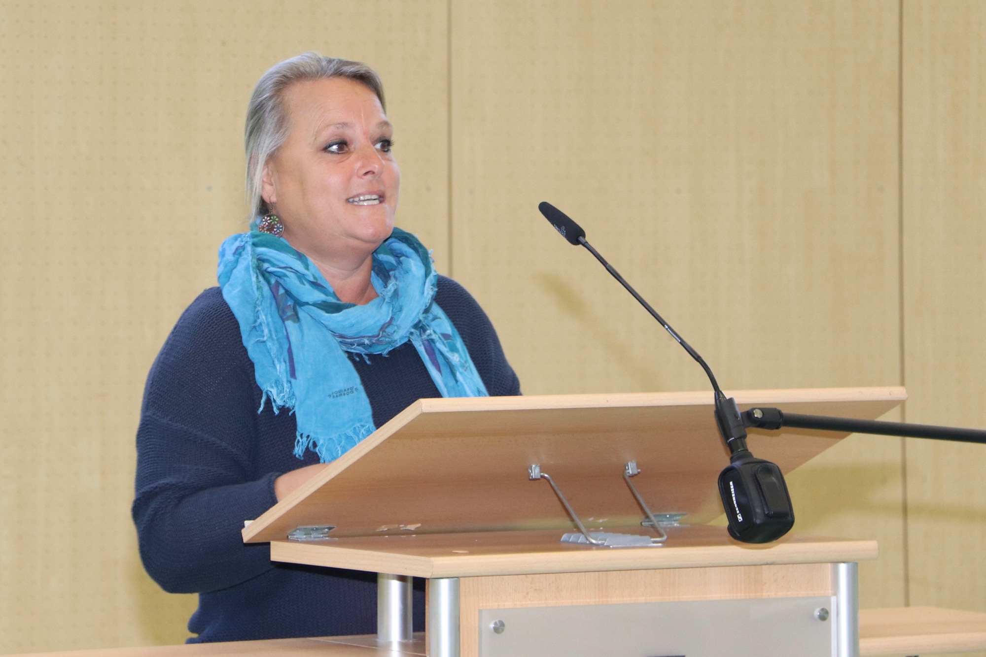 In ihrer Rede nahm Schulleiterin Frau Herbst Bezug auf die zwei großen „M“s des Lernens: die Motivation und das Miteinander. Sie bescheinigte den Kindern, dass sie sehr motiviert wirkten. Doch sei Lernen nicht immer nur angenehm, und manchmal müsse man sich dazu auch überwinden – hier zog sie eine Parallele zum Muskeltraining, zu dem man sich am besten motivieren könne, wenn man sich mit Freunden verabrede. Womit sie beim Begriff „Miteinander“ anlangte: Die Kinder seien nun Teil einer neuen, sehr großen Gemeinschaft und fragten sich, wie man sich in einer so großen Gemeinschaft wohl fühlen solle. Doch diese Sorge nahm ihnen Frau Herbst – eine Vielzahl von Akteuren am Taunusgymnasium sei darum bemüht, den Neulingen den Einstieg zu erleichtern; etwa die Pat*innen aus der E-Phase, die vor einigen Jahren ebenfalls als Fünftklässler*innen an derselben Stelle saßen. Alle hätten auf ihre eigene Weise einen Platz in der Gemeinschaft gefunden; und genauso werde dies den Kindern mit Hilfe ihrer Klassenlehrer*innen und ihrer Mitschüler*innen gelingen. Die Eltern ermunterte Frau Herbst, sich in der Schulgemeinschaft einzubringen, etwa in der Bibliothek, im Elternbeirat oder im WoB, das sich für die leibliche Stärkung der Schüler*innen in den Pausen einsetzt. Abschließend wünschte Frau Herbst den Kindern viel Motivation und viel Miteinander und hieß sie am Taunusgymnasium herzlichen willkommen.