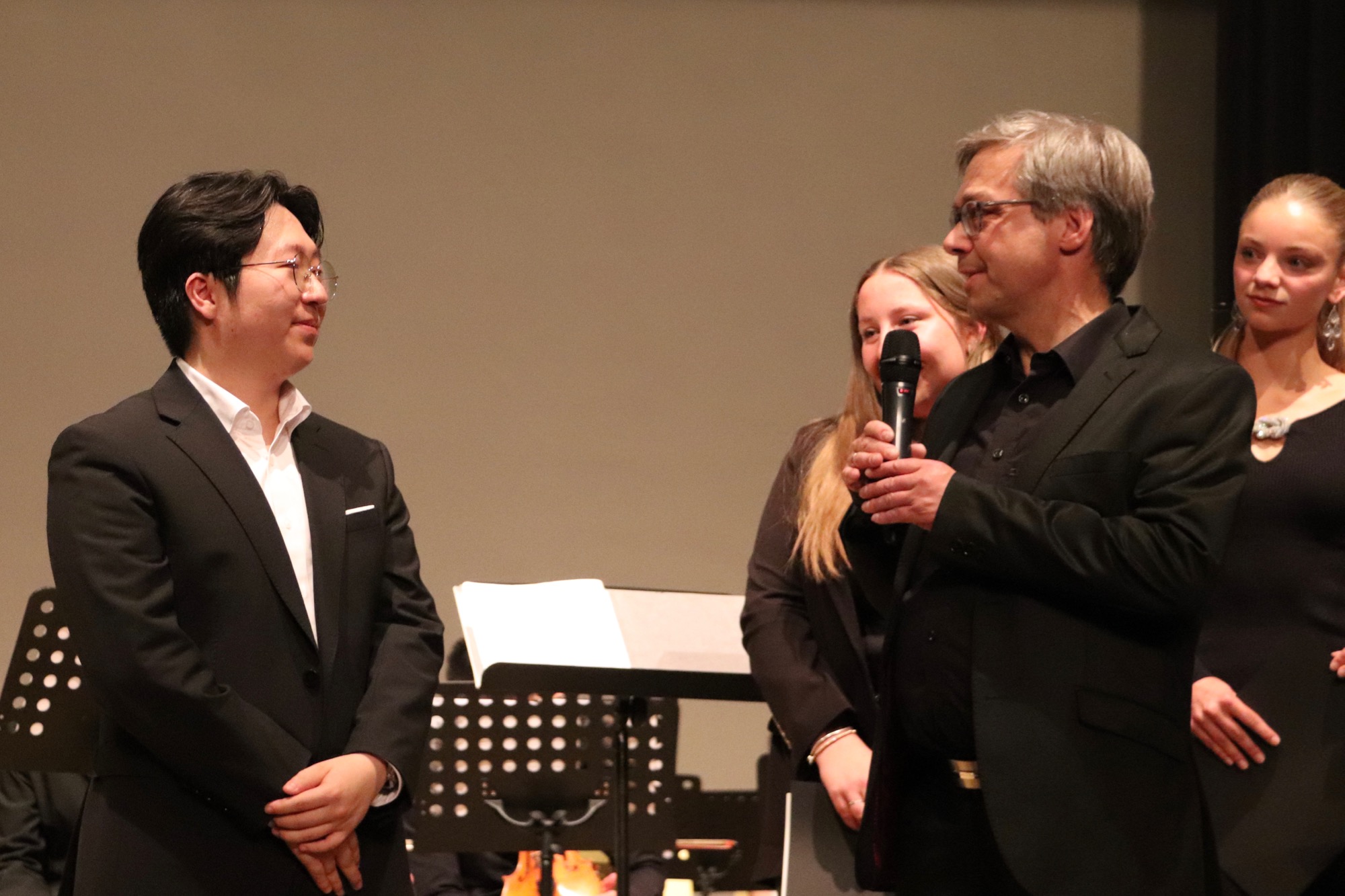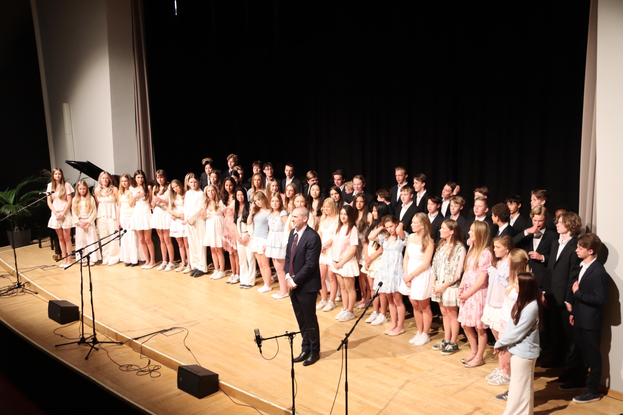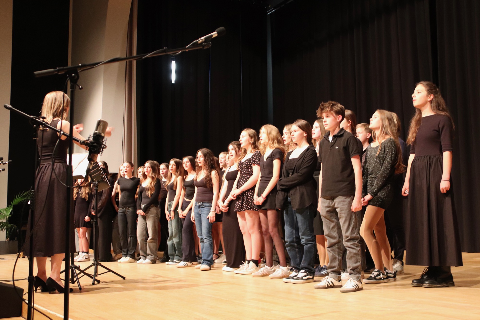 Ein besonderes Erlebnis folgte nun: Der Chor „Sollentuna Musikklasser“ unter Leitung von Anna Segerfelt und Jakob Lundqvist aus Schweden begeisterte das Publikum mit dem norwegischen Hochzeitslied „Bruremarsj fra Val“ und dem Song „Time“. Der Chor war im Rahmen eines Austauschprogramms zu Gast – die schwedischen Jugendlichen hatten zuvor eine Woche mit dem Chor „Taunus Tunes“ geprobt und waren bei Gastfamilien untergekommen. Im Gegenzug besuchten unsere Sängerinnen und Sänger die neue schwedische Partnerschule in der Nähe von Stockholm in der darauf folgenden Woche.