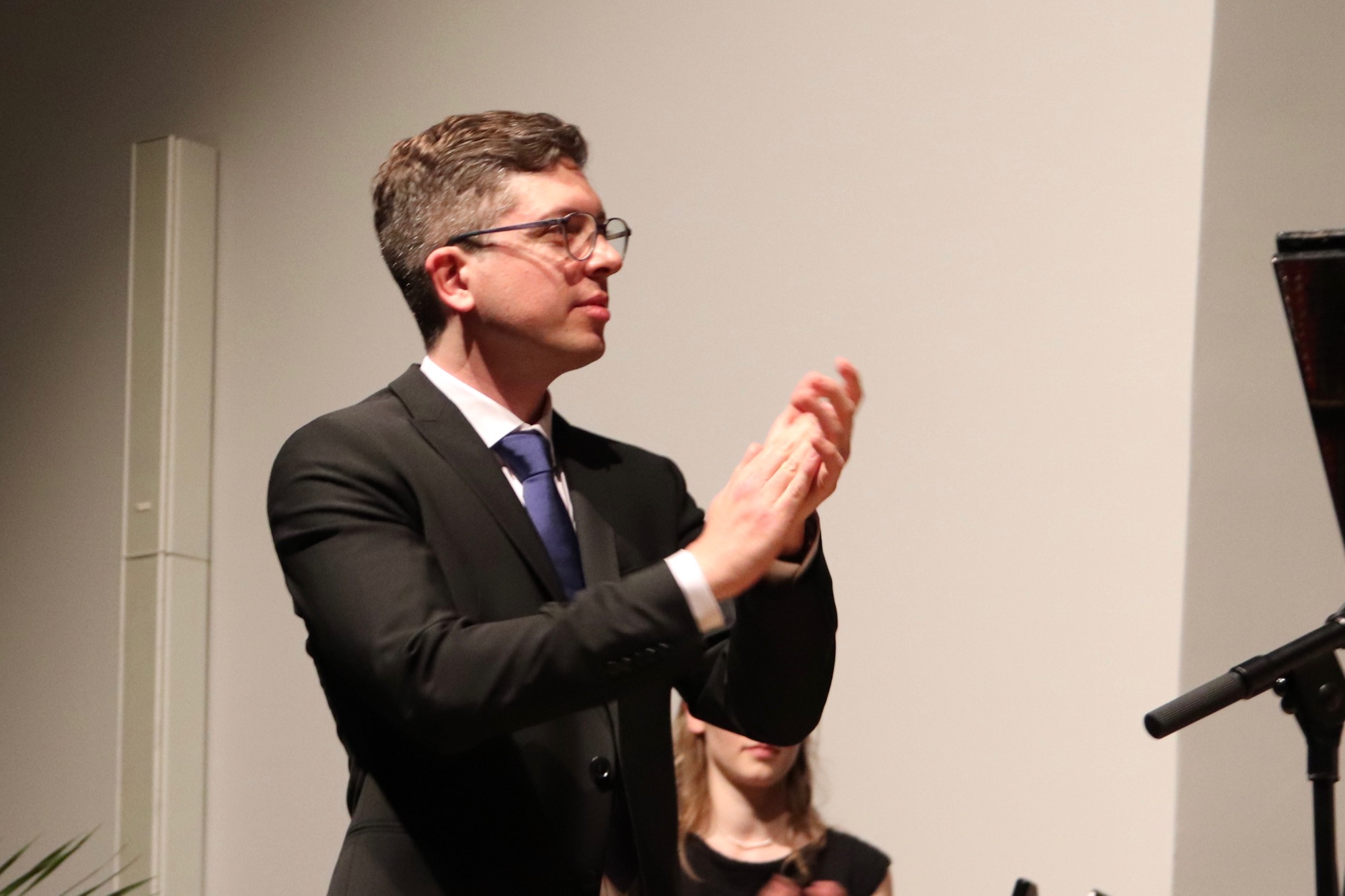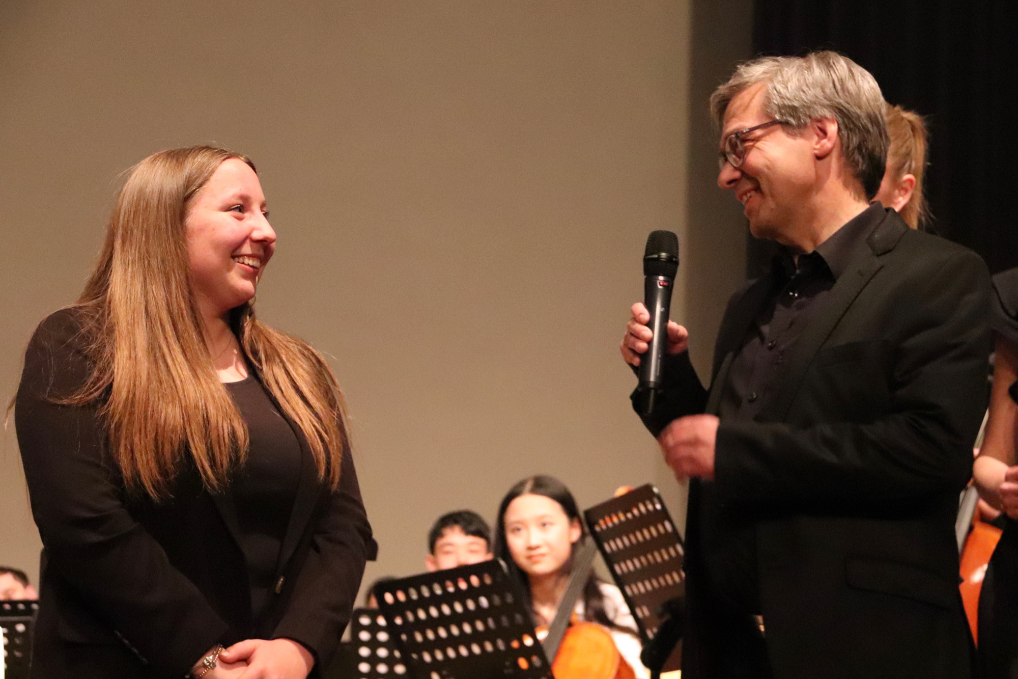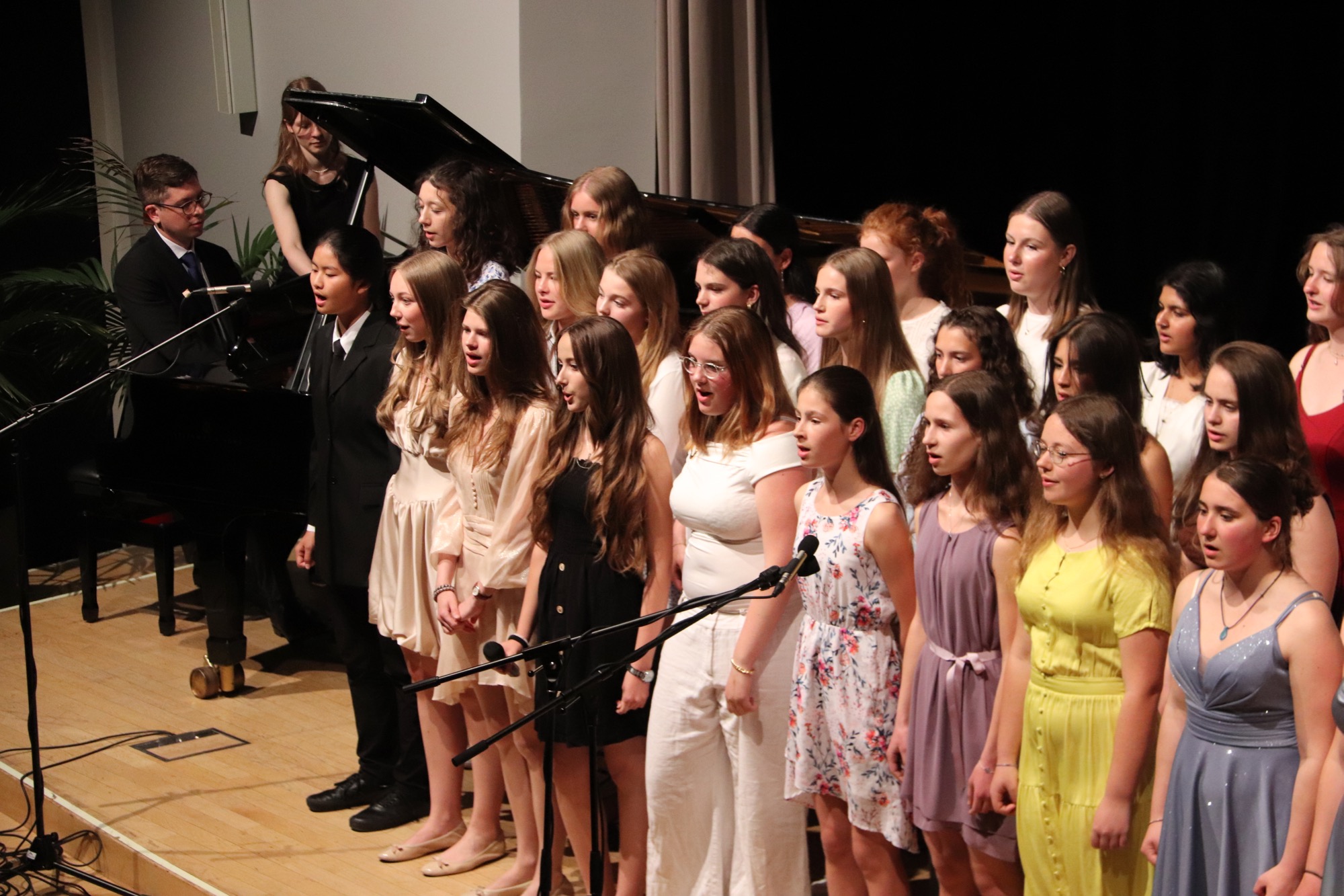 Ein besonderes Erlebnis folgte nun: Der Chor „Sollentuna Musikklasser“ unter Leitung von Anna Segerfelt und Jakob Lundqvist aus Schweden begeisterte das Publikum mit dem norwegischen Hochzeitslied „Bruremarsj fra Val“ und dem Song „Time“. Der Chor war im Rahmen eines Austauschprogramms zu Gast – die schwedischen Jugendlichen hatten zuvor eine Woche mit dem Chor „Taunus Tunes“ geprobt und waren bei Gastfamilien untergekommen. Im Gegenzug besuchten unsere Sängerinnen und Sänger die neue schwedische Partnerschule in der Nähe von Stockholm in der darauf folgenden Woche.