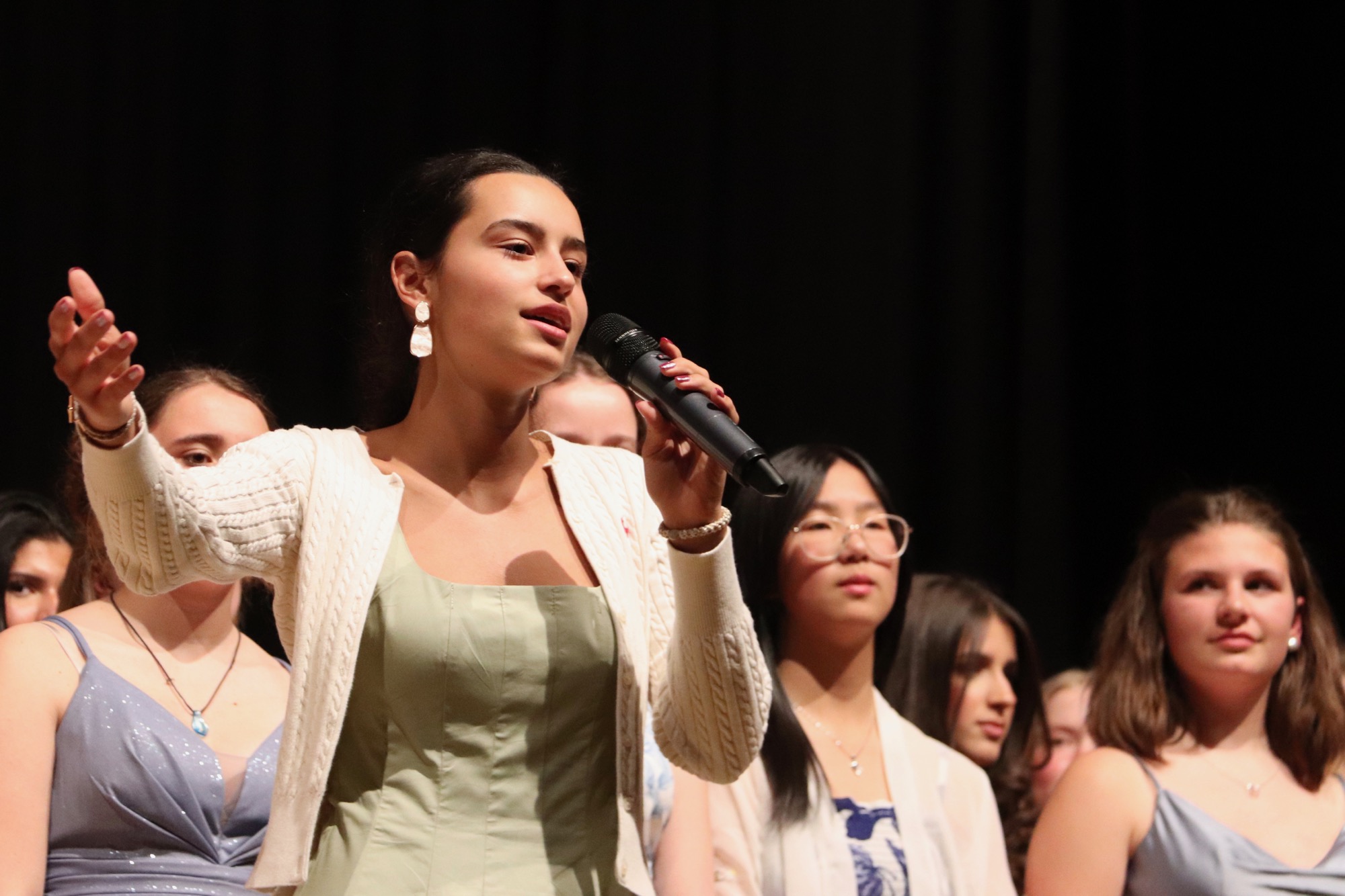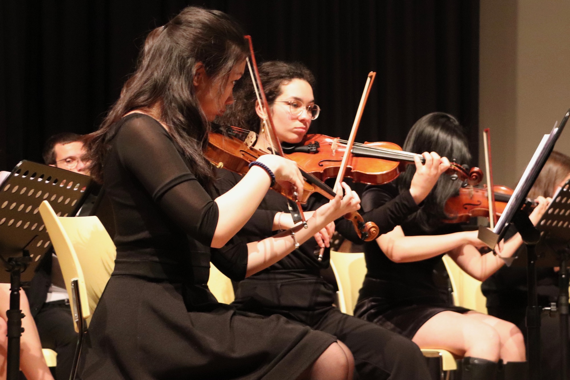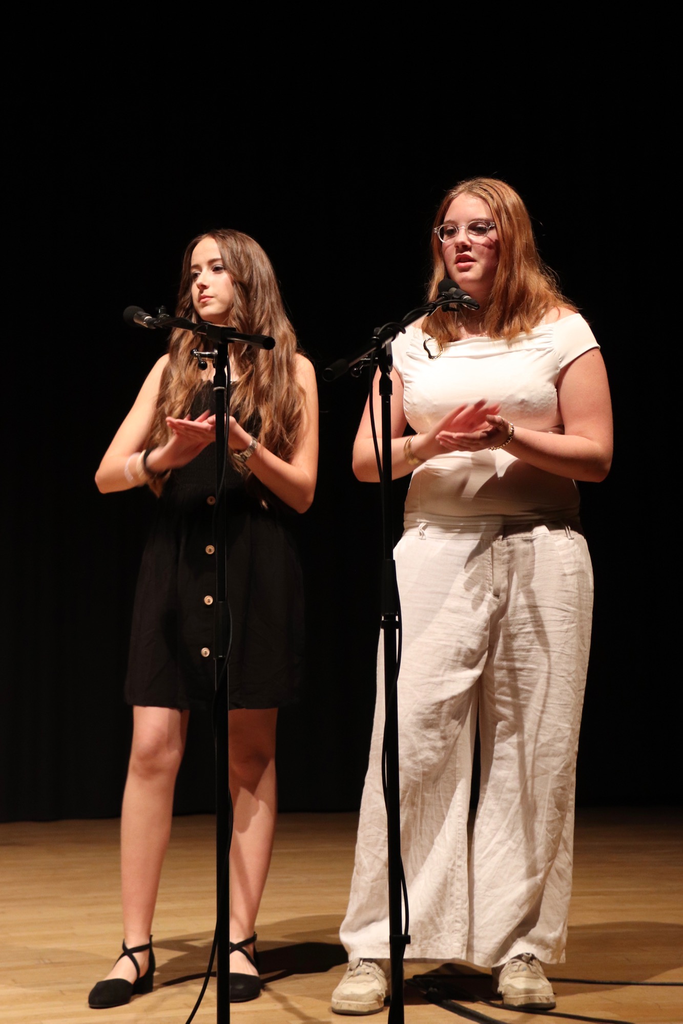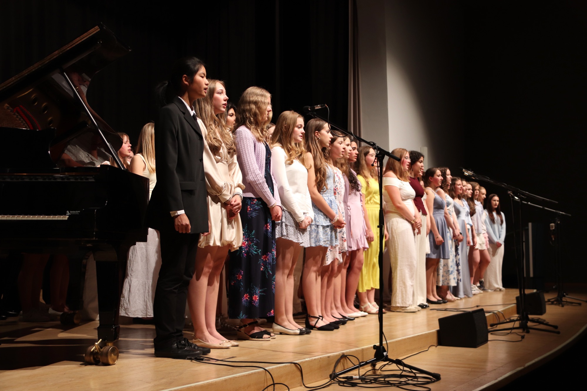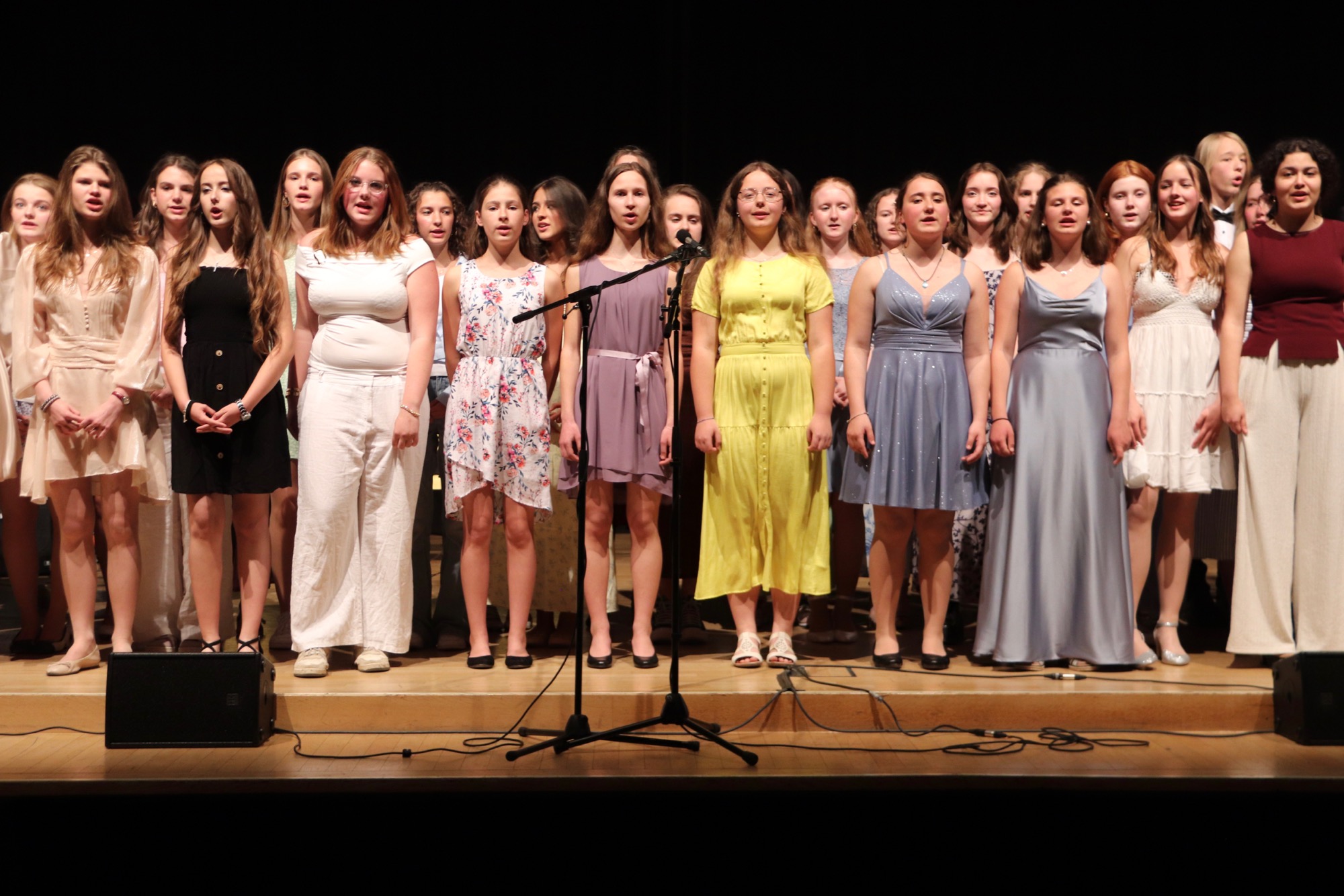 Der erste Abend wurde von den Orchestern und Chören der höheren Jahrgangsstufen gestaltet. Den Anfang machte das Gesangs-Ensemble „ChorUs“ unter Leitung von Frau Büttner, das die Songs „Mamma Mia“ von ABBA, „Sound of Silence“ von Simon and Garfunkel und „Price Tag“ von Jessie J. interpretierte und damit das Publikum in seinen Bann zog.