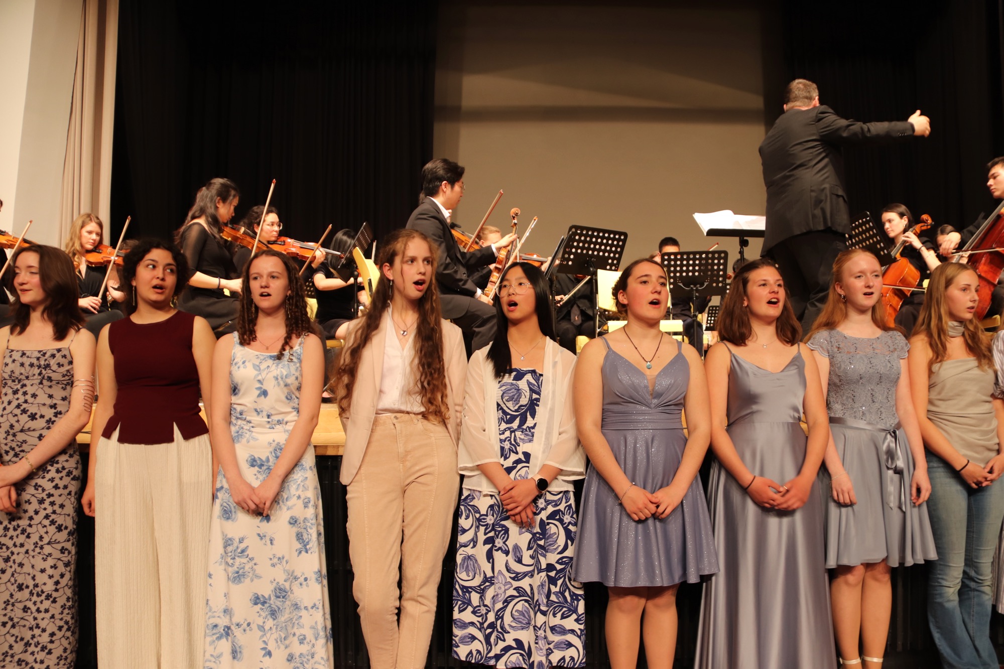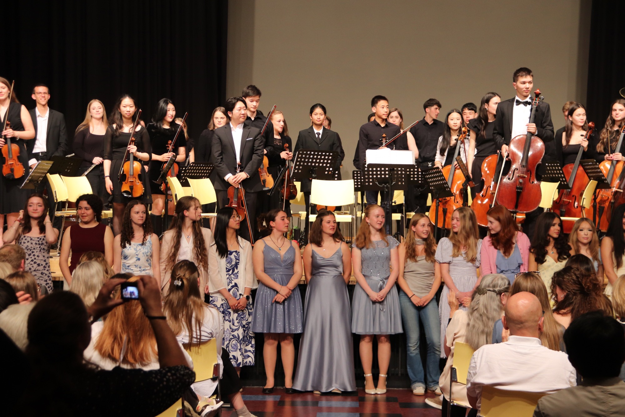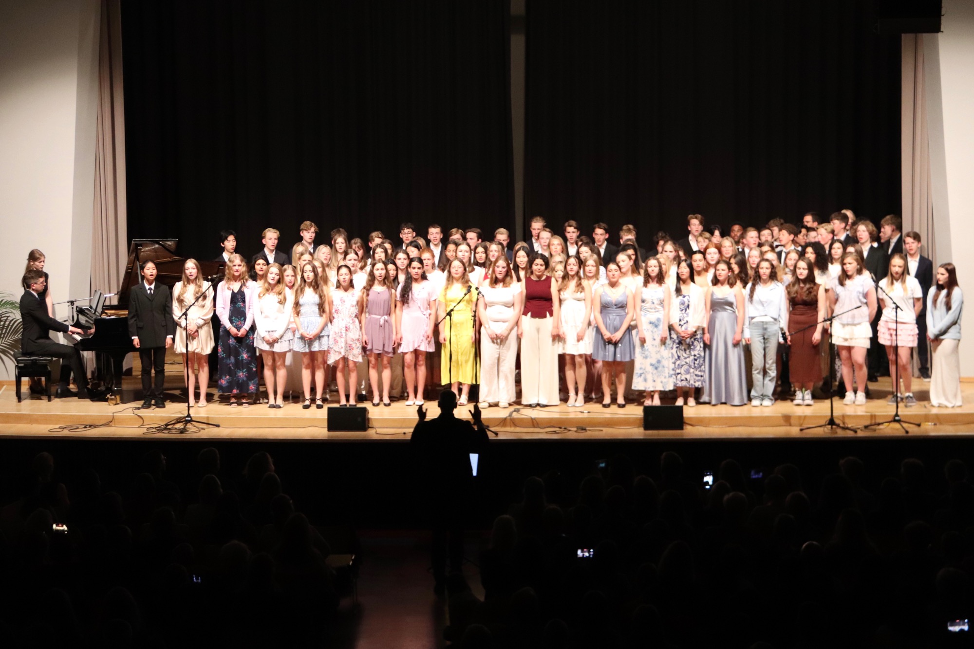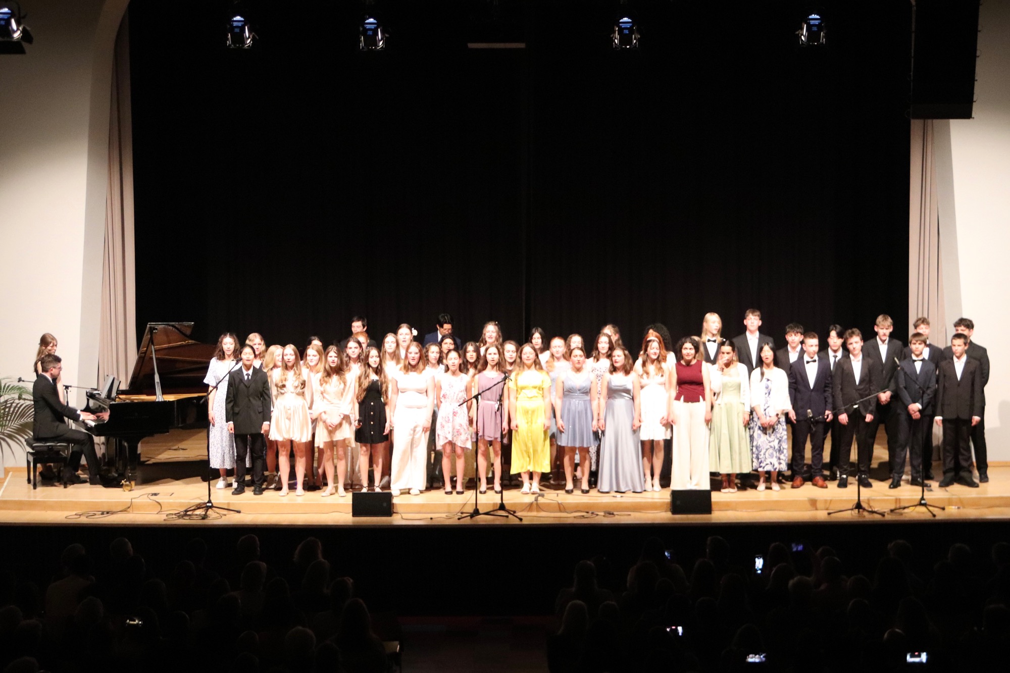 Die Früchte der gemeinsamen Arbeit waren anschließend zu hören: „Taunus Tunes“ und „Sollentuna Musikklasser“ betraten gemeinsam die Bühne und stimmten „Yesterday“ von den Beatles, das Volkslied „Ack, Värmeland“, „Going Up Yonder“ von Walter Hawkins – mit Soli von Elif Karaduman (9g) und Deri Sheppard (8a) – sowie „Carry the Light“ von Andy Beck mit einem Solo von Soraya Wingenter (9f) an und verzauberten damit das Publikum.