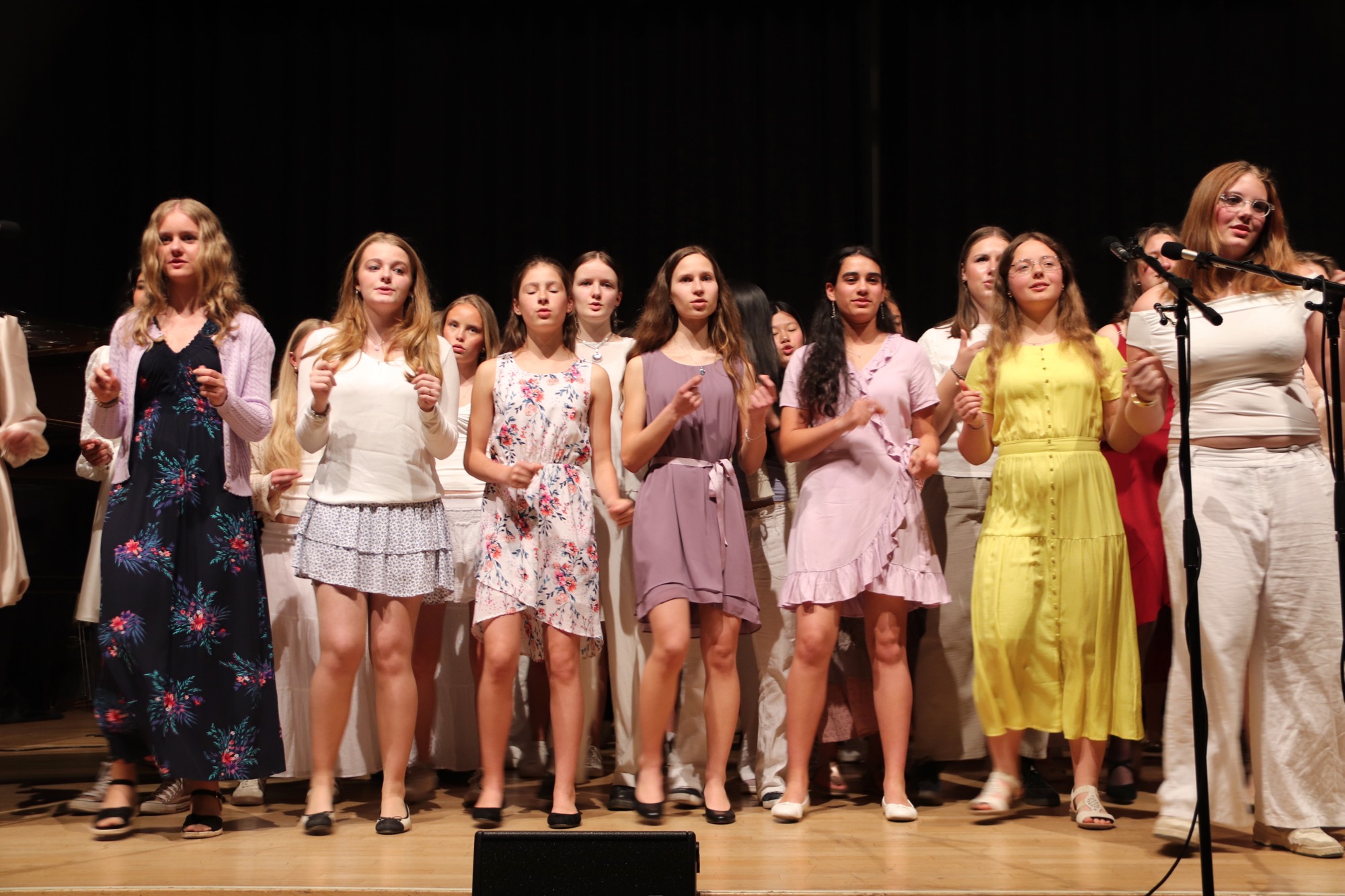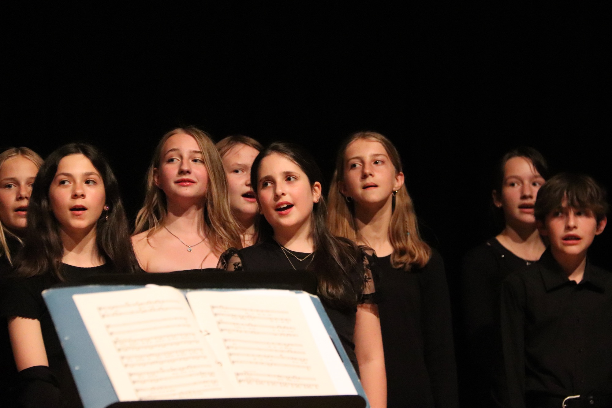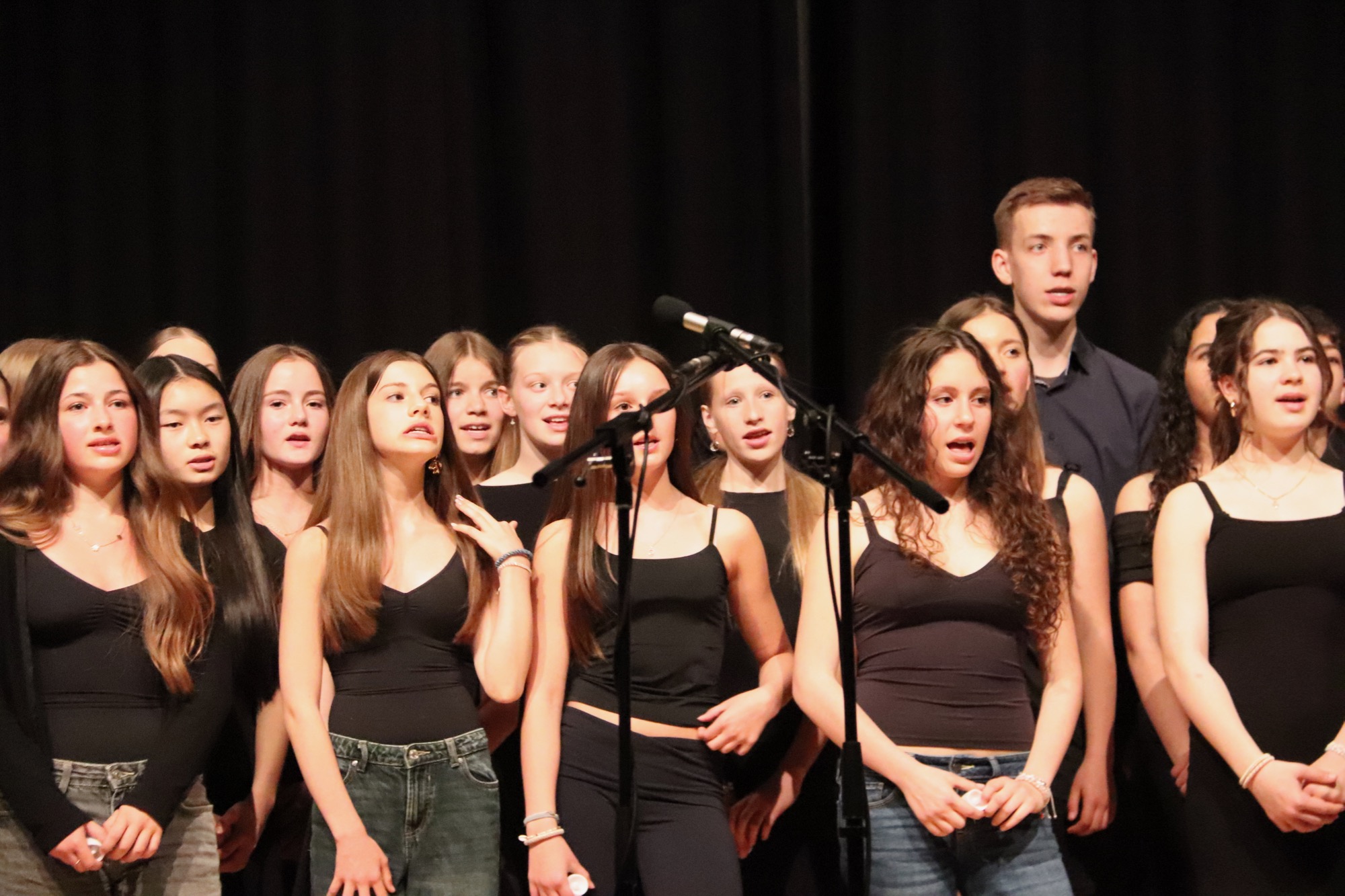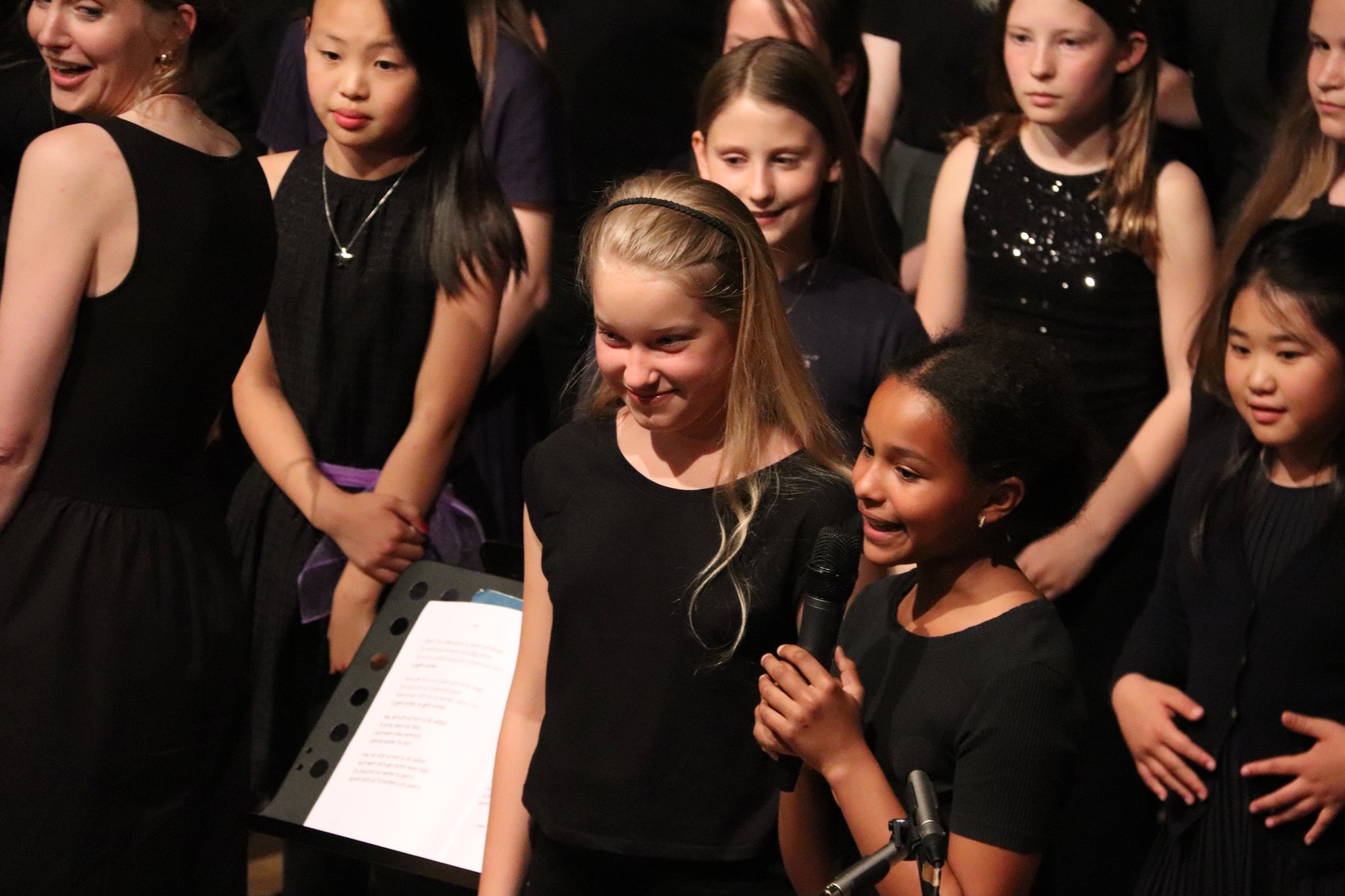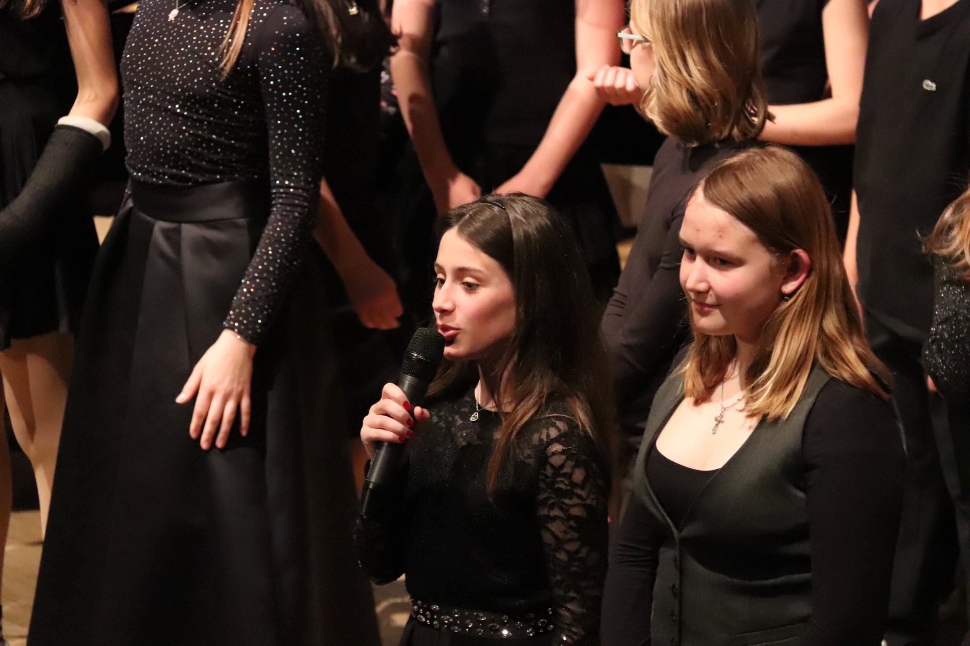Die Früchte der gemeinsamen Arbeit waren anschließend zu hören: „Taunus Tunes“ und „Sollentuna Musikklasser“ betraten gemeinsam die Bühne und stimmten „Yesterday“ von den Beatles, das Volkslied „Ack, Värmeland“, „Going Up Yonder“ von Walter Hawkins – mit Soli von Elif Karaduman (9g) und Deri Sheppard (8a) – sowie „Carry the Light“ von Andy Beck mit einem Solo von Soraya Wingenter (9f) an und verzauberten damit das Publikum.