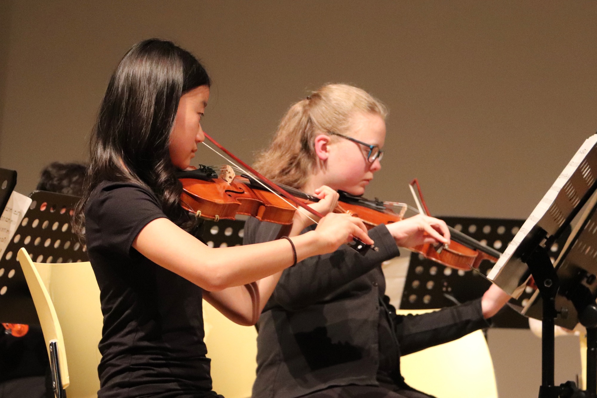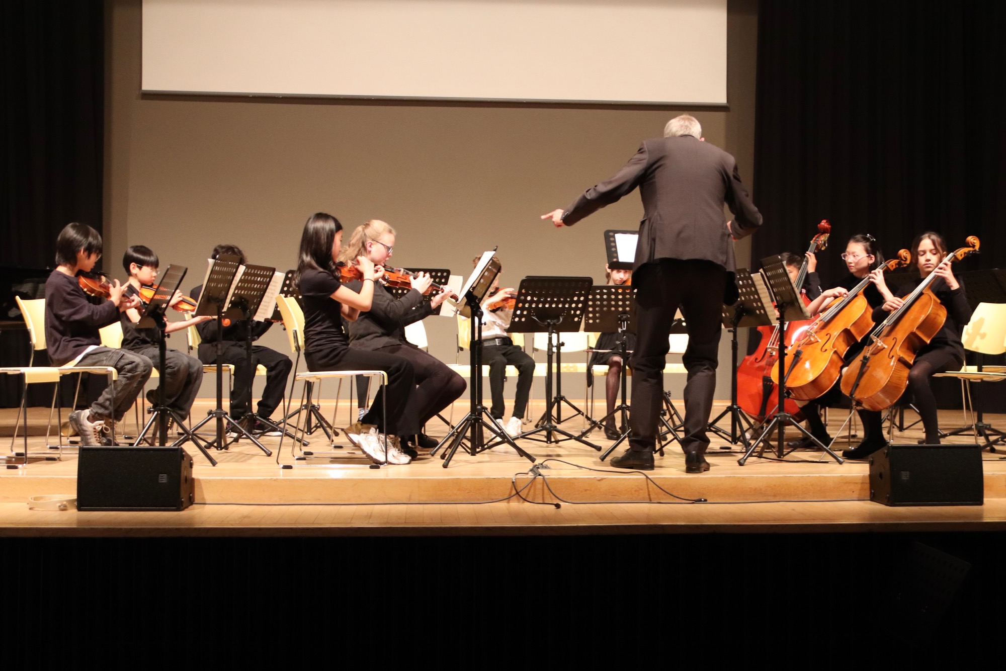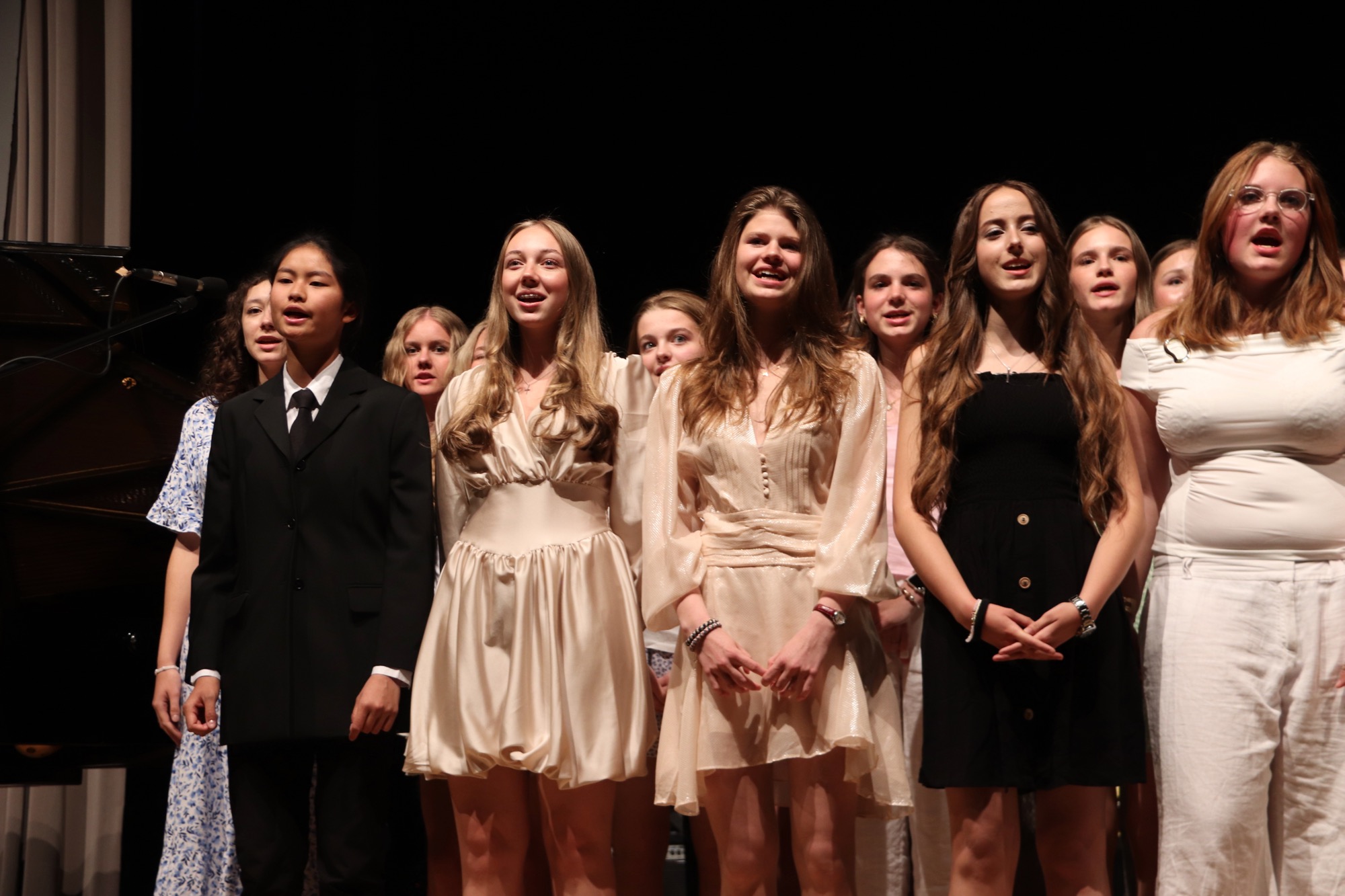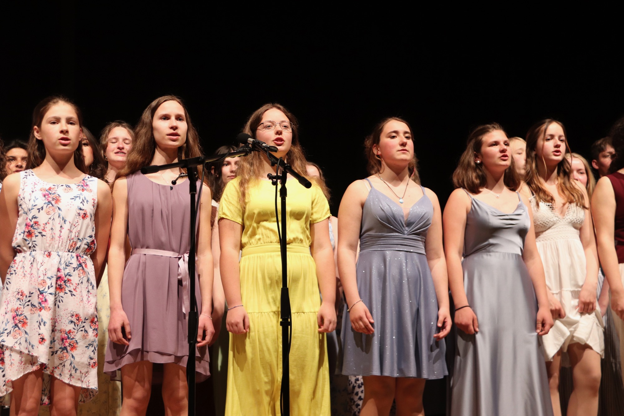 Die Früchte der gemeinsamen Arbeit waren anschließend zu hören: „Taunus Tunes“ und „Sollentuna Musikklasser“ betraten gemeinsam die Bühne und stimmten „Yesterday“ von den Beatles, das Volkslied „Ack, Värmeland“, „Going Up Yonder“ von Walter Hawkins – mit Soli von Elif Karaduman (9g) und Deri Sheppard (8a) – sowie „Carry the Light“ von Andy Beck mit einem Solo von Soraya Wingenter (9f) an und verzauberten damit das Publikum.