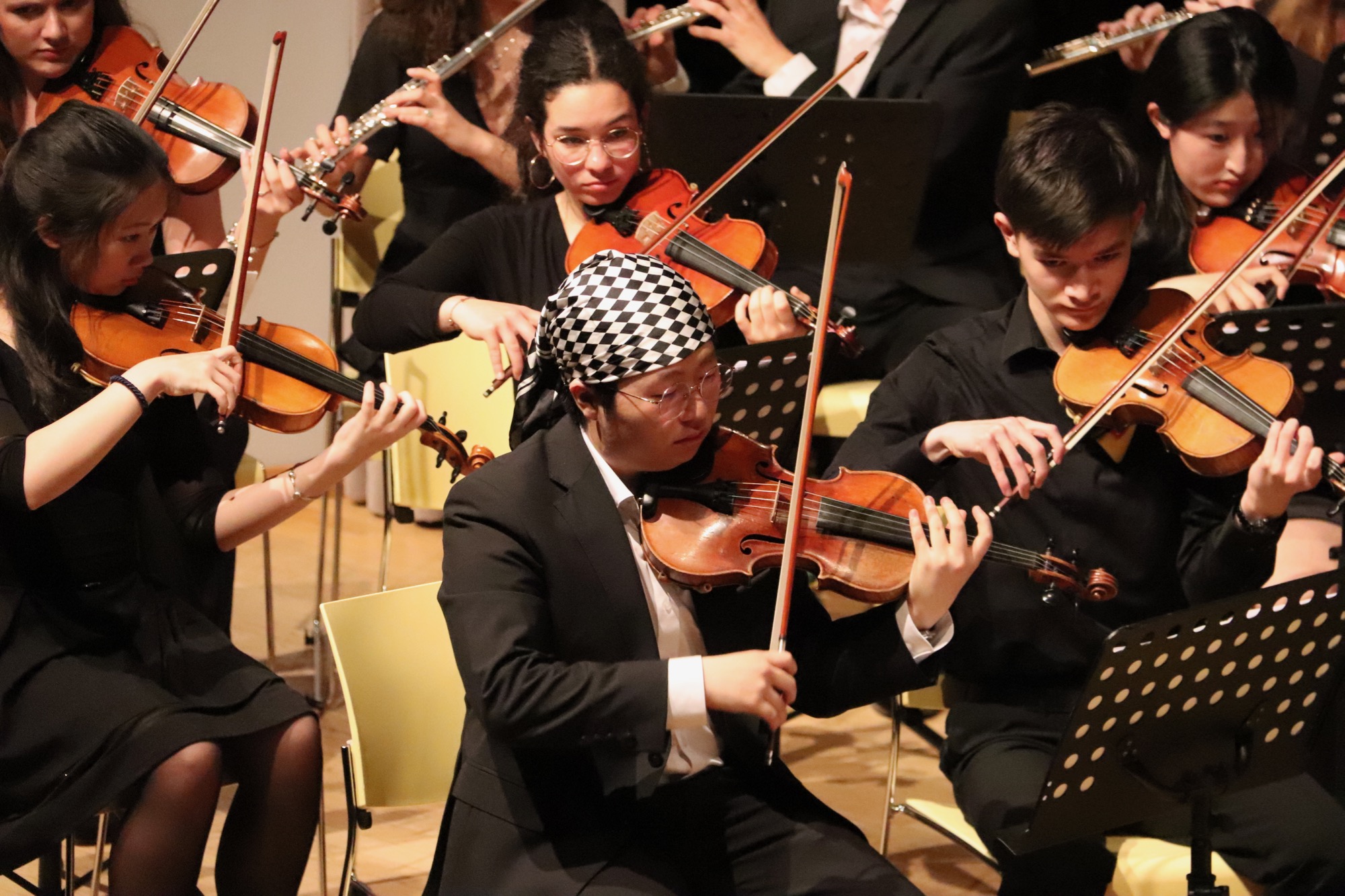 Als krönender Abschluss kamen nun gleich drei der Ensembles gemeinsam auf die Bühne: das Große Orchester, der Chor „Taunus Tunes“ und der schwedische Gastchor „Sollentuna Musikklasser“. Sie alle stimmten die wahrhaft völkerverbindende „Ode an die Freude“ (op. 125) von Ludwig van Beethoven an und kreierten damit eine feierlich-festliche Stimmung im Haus der Begegnung.