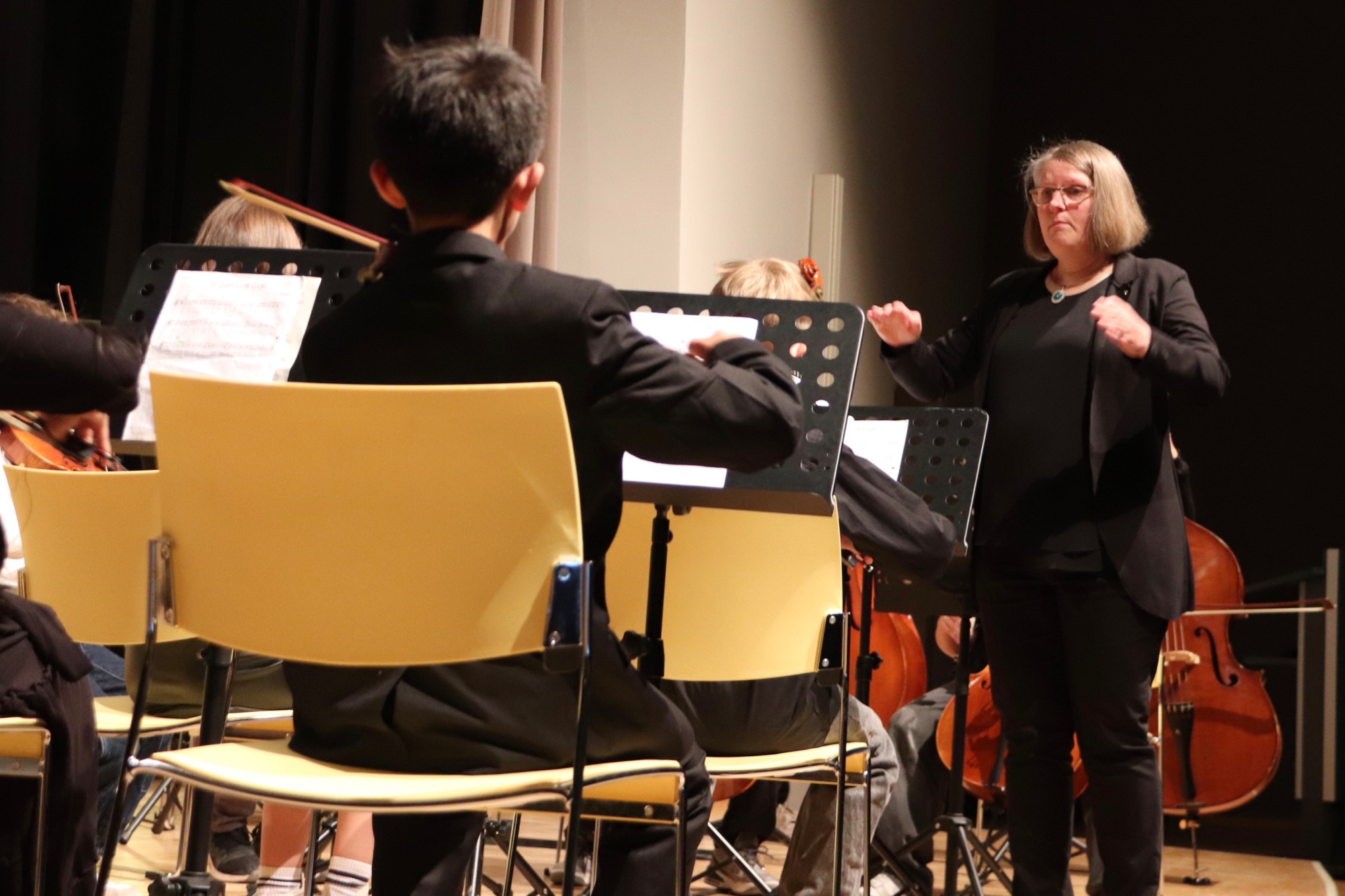 Schulleiterin Frau Herbst lobte in ihrem Grußwort das große Engagement der Musik-Lehrkräfte und der jungen Musizierenden, die mit viel Herzblut arrangiert, geprobt und geübt hatten. Moderiert wurde der Abend charmant und humorvoll von Herrn Leichtfuß.