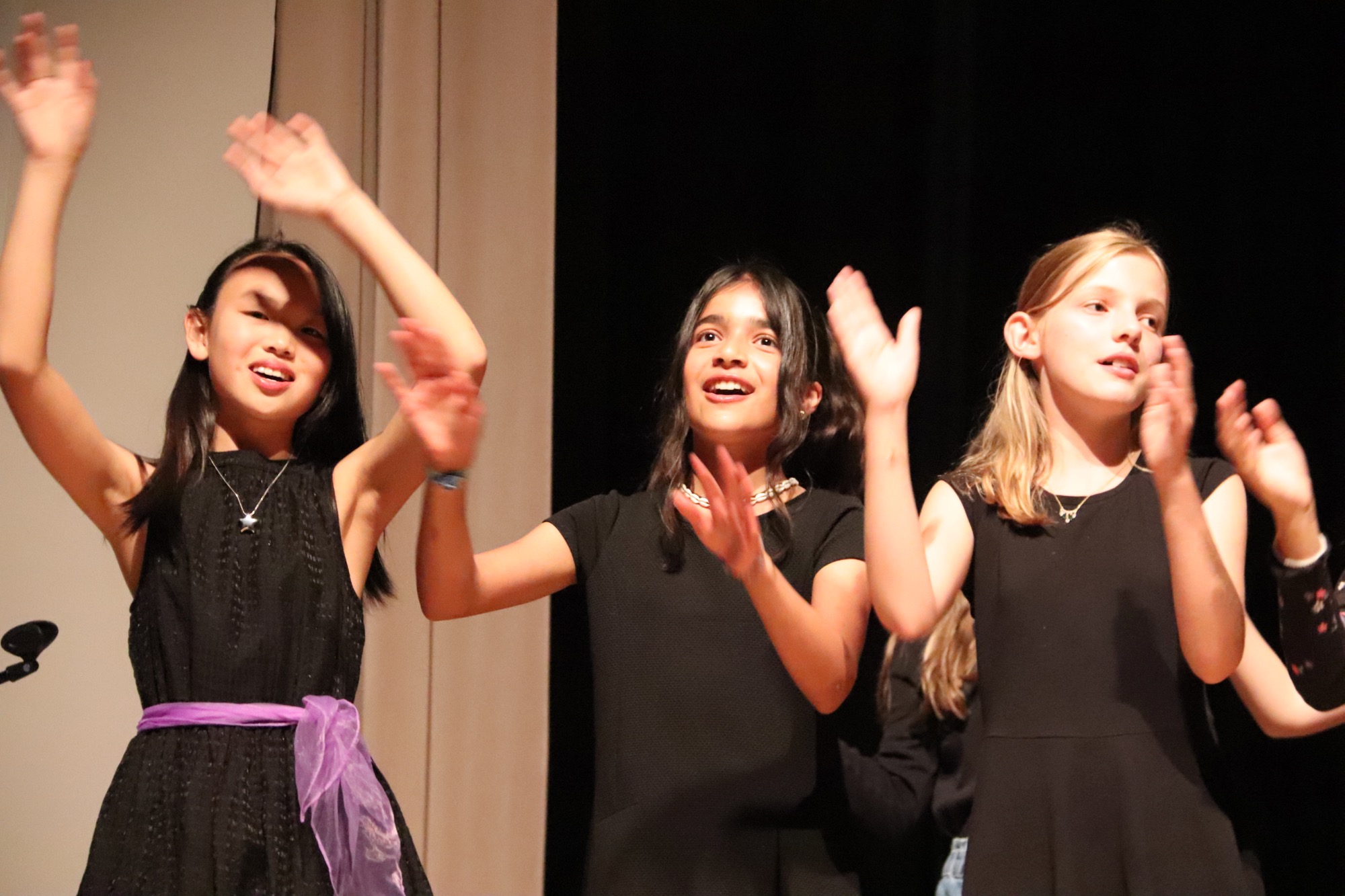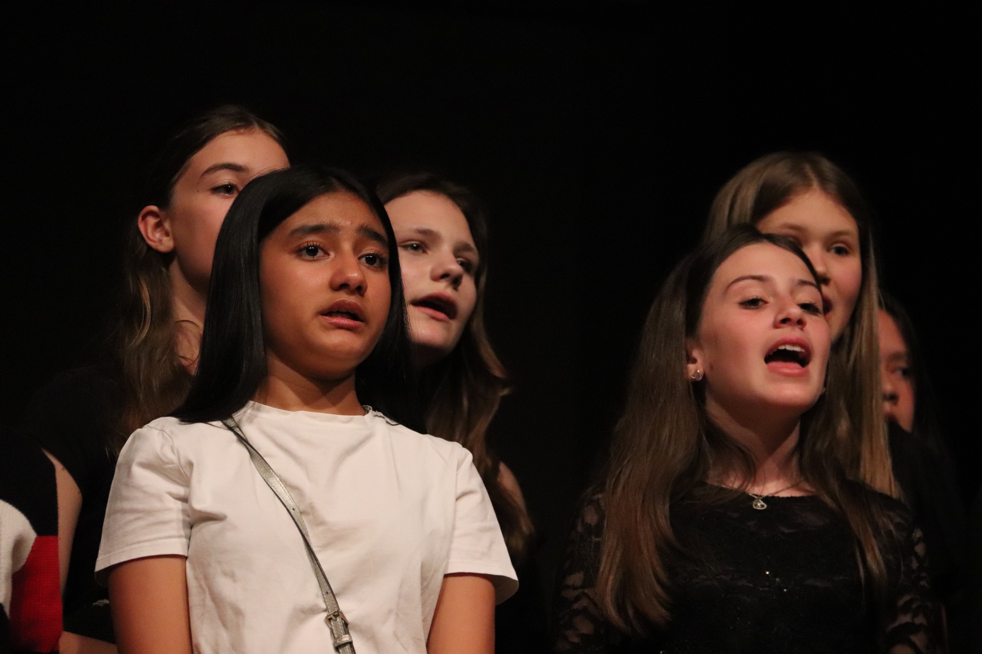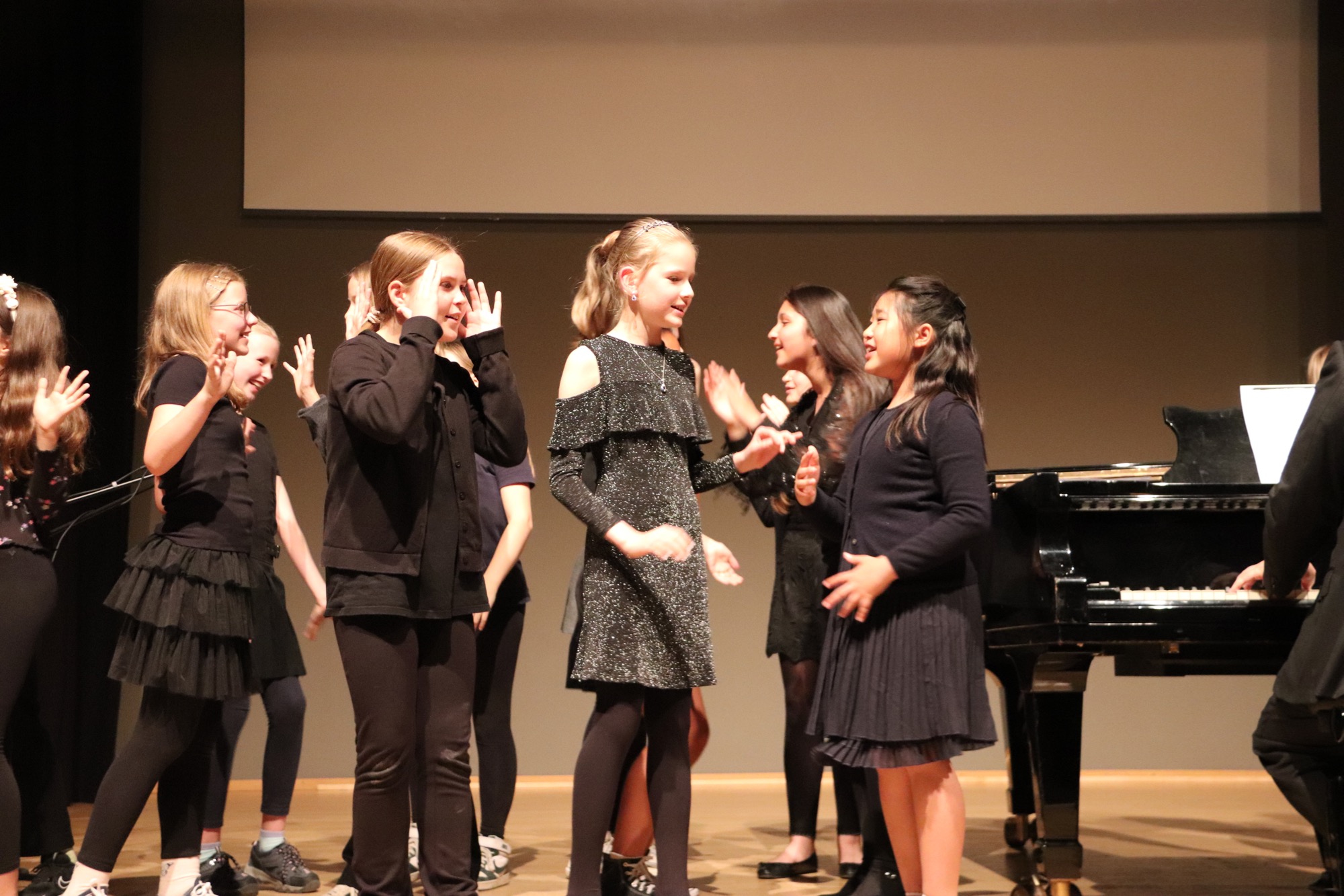 Die Gesangsklasse 6 sang unter Leitung von Frau Büttner die Songs „Hakuna Matata“ von Elton John, „Mamma Mia“ von ABBA und „Million Dreams“ von Benj Pasek und Justin Nobel Paul. Dabei wurde die Darbietung zusätzlich zum energiegeladenen Gesang mit kleinen choreographischen Elementen und Requisiten angereichert.