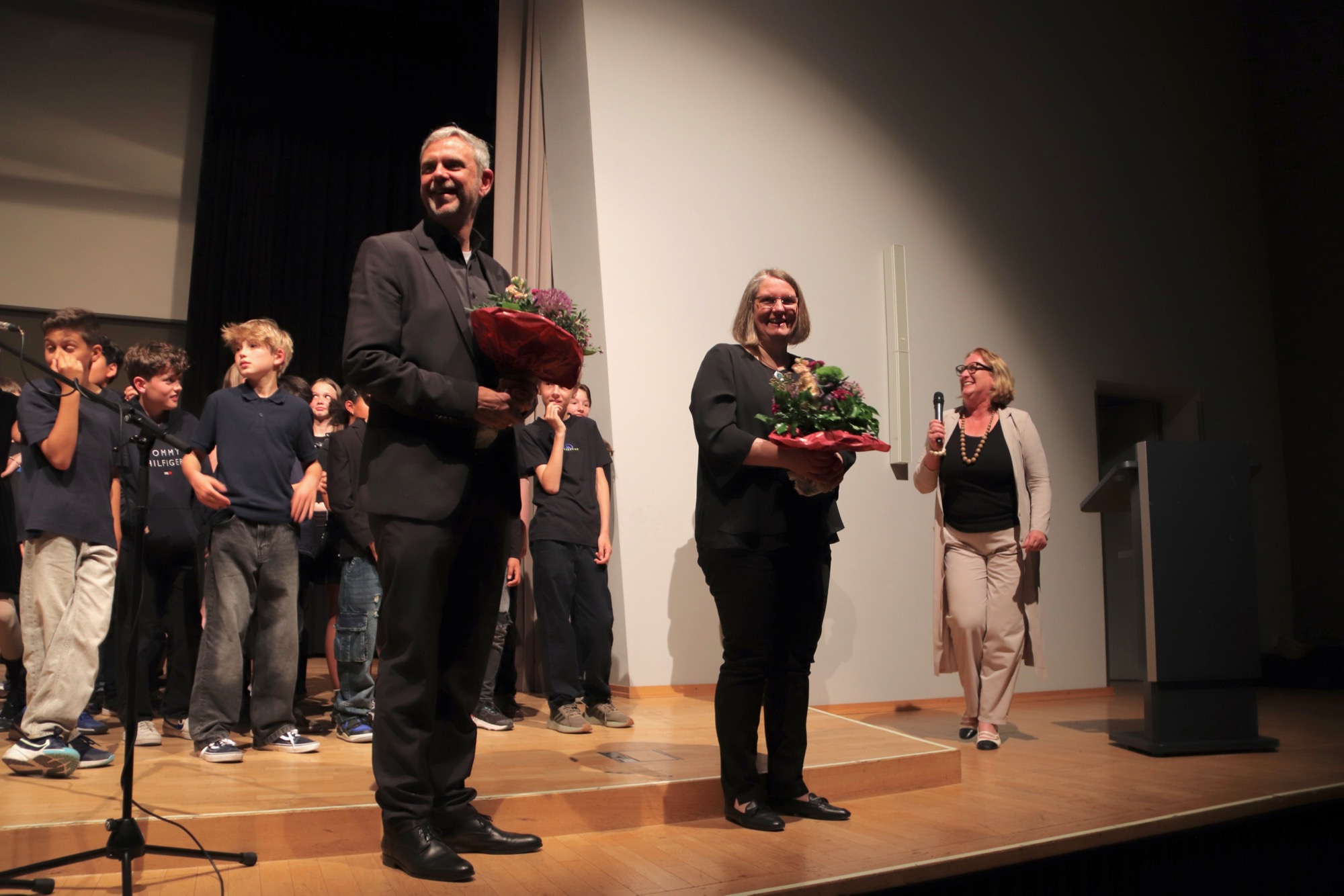 Es ist eine liebgewonnene Tradition, dass beim Sommerkonzert die musikalisch aktiven Abiturientinnen und Abiturienten feierlich verabschiedet werden. Die Abschiedsworte waren emotional und von großer Dankbarkeit für das gemeinsame Schaffen geprägt. Von den Schulabgängerinnen und -abgängern erhielten die Musik-Lehrkräfte große Blumensträuße überreicht.