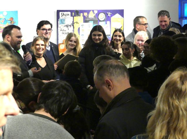 Am 20. Februar fand die diesjährige Vernissage zur Ausstellung von Kunst aus Schulen des Hochtaunuskreise in der Galerie Atlantis in Bad Homburg statt, in deren Verlauf die gelungensten der eingereichten Werke von einer in der Sache bewanderten Jury mit Preisen ausgezeichnet wird. In diesem Jahr haben sich neben dem TGK, das durch den Leistungskurs der Q1 unter Leitung von Frau Schendzielorz vertreten und mit dem großformatigen Werk „Brave enough“ in den Wettbewerb gegangen war, acht weitere Schulen des Hochtaunuskreises mit zum Teil mehreren Beiträgen beteiligt. Die Vernissage war noch besser besucht als in den letzten Jahren und die ausgestellten Schülerwerke wurden intensiv begutachtet und besprochen. Mit Spannung wurde dann die Preisverleihung verfolgt. Die Jury hatte sich in diesem Jahr entschieden, drei zweite und drei erste Plätze zu vergeben. Nachdem alle Preisträger bekanntgegeben worden waren und nur noch der letzte Preisträger offen war, war die Spannung für unsere SchülerInnen kaum noch zu ertragen. Unter Würdigung der gelungenen Gegenüberstellung der beiden Seiten - der heilen Welt, fast schon kitschig, übertrieben schön im goldenen Licht auf der einen Seite und den kritisch zu betrachtenden Zusammenhängen, aufgegriffen in den künstlerischen Positionen auf der anderen Seite, hier verbunden mit der Aufforderung, die Handys bereit zu halten, um QR-Codes für Musik zu scannen und zu den individuellen Statements der einzelnen Gemälden dieser zweiten Seite die diese pointierende Musik zu hören, wurden sie für ihre Arbeit vom Landrat des Hochtaunuskreises mit dem mit einem Geldpreis versehenen ersten Preis ausgezeichnet.
